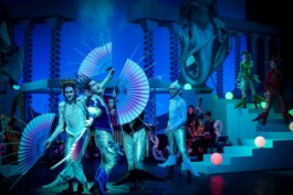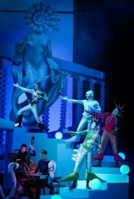 Under the sea. We are in the last major city at the bottom of the sea. Here, sea people live peacefully with sea fish and seafood. But the once bubbling empire has now gone underwater. Where once prosperity for all was touted, there are now unmistakable cracks. The fall of civilisation is imminent, but the mermaids don't want to hear about it. They all go about their business as diligently as ever. They cut back the proliferating algae, scrape the shells from the walls and try to make the starfish shine again. After all, today is the first day in office of the new prime minister and the empress of a foreign empire has announced herself. But then love intervenes. Negotiators come to a standstill, old friends see each other in a new light, Mum and Dad have to talk things out, Mermaid gets pregnant. And suddenly everything else becomes a minor matter. Love actually is all around.