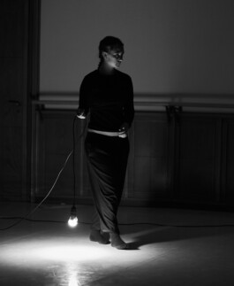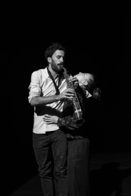 SCHNUFE is the Swiss-German word for breathing. In their piece, the dancer Johanna Heusser and the saxophonist Marc Vilanova take a look at their coexistence on a stage and demonstrate strategies of controlling and manipulating the other. The two artists do not perform here primarily as a dancer and a musician, but as two individuals circling the space of the other, who either expand or constrict their common air-space. The music triggers the body, the movement sets off the sound. The breath becomes a language that determines the space for communication between the protagonists. With everything at their disposition, they direct and guide themselves and the other. Through the common use of one single air space, they learn how to set themselves in a relationship with each other. Sound, muscles, breath, touch, gesture: without these movements, both are lost.